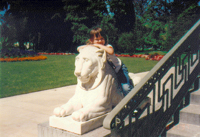 Here is Natalie riding a lion at the park in the old town of Geneva.
